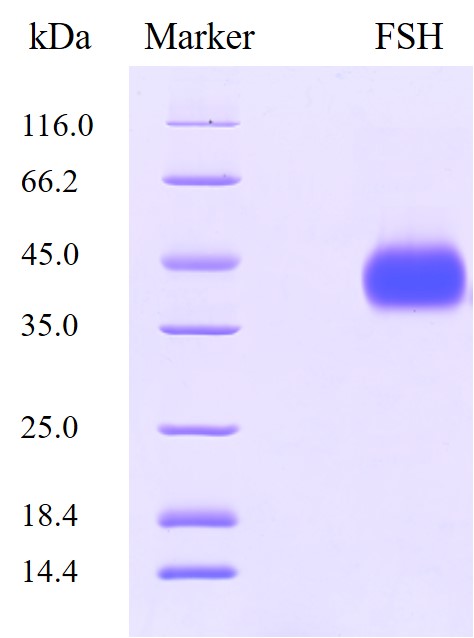 重組人FSH抗原是由中國(guó)倉(cāng)鼠卵巢(CHO)細(xì)胞表達(dá)的人FSH蛋白,由alpha亞基(NP_000726.1)和beta亞基(NP_000501.1)以非共價(jià)鍵形式連接成異二聚體。